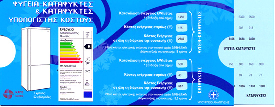 Πριν την αγορά του, συγκρίνετε την κατανάλωση ενέργειας από τις πληροφορίες της ενεργειακής ετικέτας, γιατί υπάρχουν σημαντικές διαφορές μεταξύ των συσκευών διαφόρων κατασκευαστών.