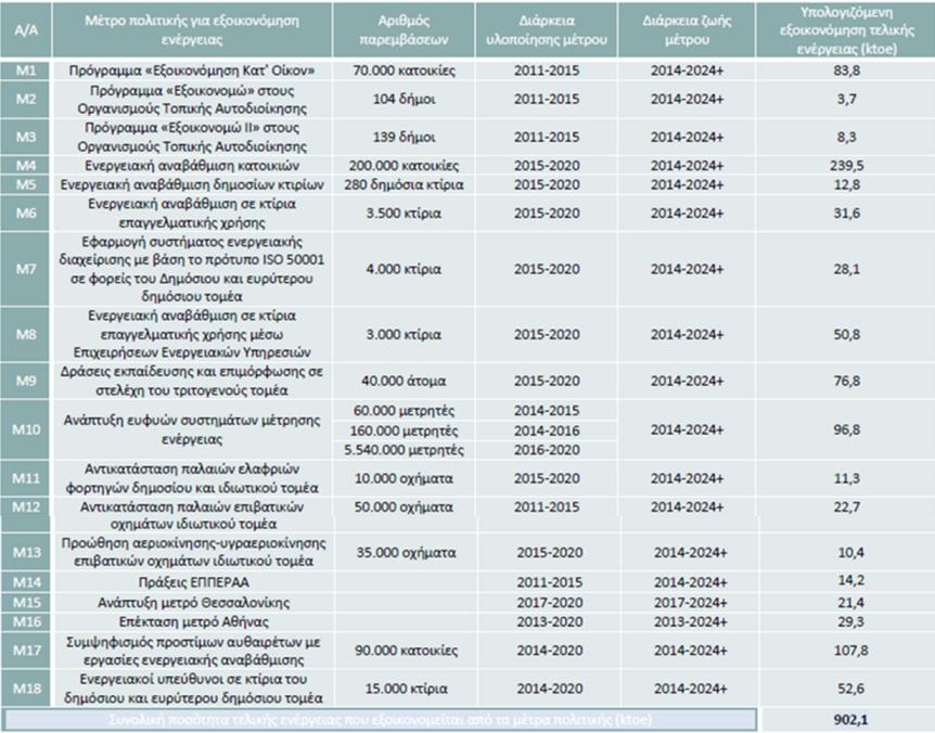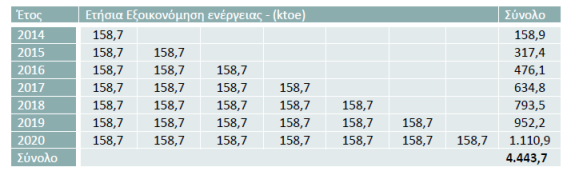 «Η συνολική ποσότητα τελικής ενέργειας που εξοικονομείται από τα μέτρα πολιτικής υπολογίζεται ότι θα ανέλθει σε 902,1 ktoe.»