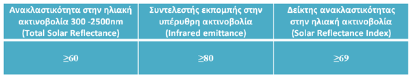 Για να ενταχθεί ένα υλικό στην κατηγορία των μεμβρανών στα πλαίσια της παρέμβασης των ψυχρών υλικών θα πρέπει να πληροί τις ακόλουθες προϋποθέσεις όσον αφορά την ανακλαστικότητα στην ηλιακή ακτινοβολία και το συντελεστή εκπομπής: