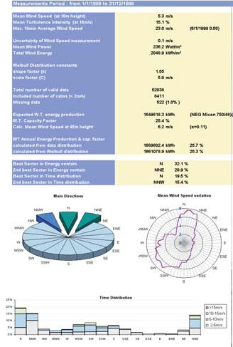 Τα αποτελέσματα των μετρήσεων παρουσιάζονται σε Εκθέσεις Δοκιμών. Για την ανάλυση των δεδομένων χρησιμοποιείται το λογισμικό WindRose © μια εφαρμογή Excel-Visual Basic που αναπτύχθηκε από το ΚΑΠΕ και παρέχει συνολικά στατιστικά στοιχεία, ημερήσια και μηνιαία μοτίβα ανέμου, διαγράμματα ανέμου ανά μήνα για μέσες και μέγιστες ταχύτητες ανέμου, παραμέτρους κατανομής Weibull συνολικά και κατά τομέα διευθύνσεων, κατανομές τύρβης σε συνάρτηση με την ταχύτητα και την κατεύθυνση του ανέμου,  συχνότητα εμφάνισης νηνεμίας κ.λπ. Η Έκθεση Δοκιμής παρέχει επίσης μια λεπτομερή περιγραφή της τοποθεσίας και μια εκτίμηση αβεβαιότητας.